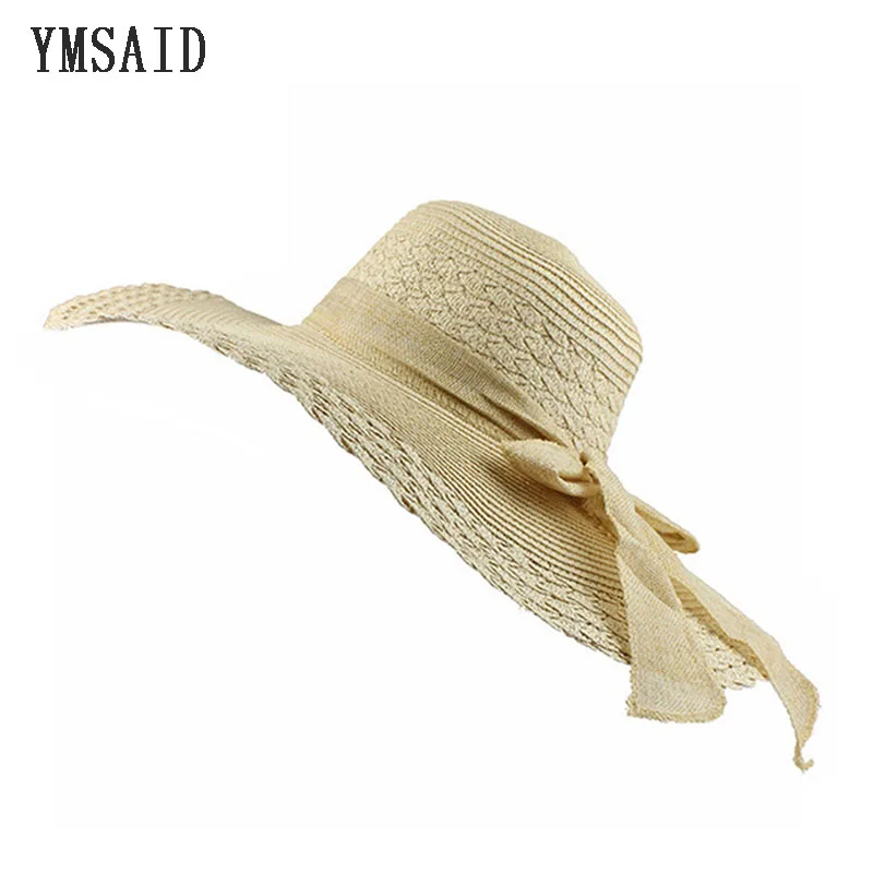 معرض من الجملة والتجزئة أزياء النساء واسعة كبيرة مرن بريم الصيف شاطئ قبعة من القش القوس فراشة القوس واقية من الشمس قبعة الشمس