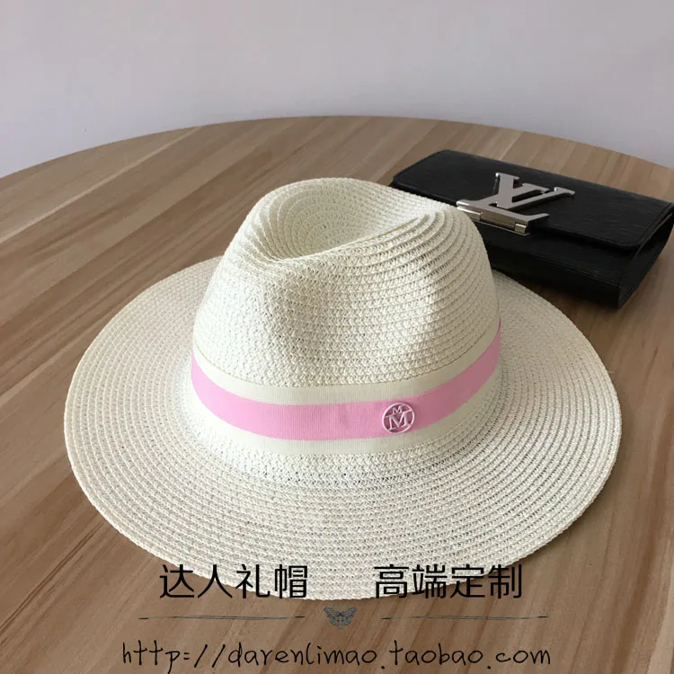 المنتجات ذات الصلة ل Beach Caps و الأزياء اللونين الوردي الشريط قبعة القش الإناث قبعة أنيقة شاطئ كاب الصيف الشمس التظليل ، مزدوجة الوردي شعار معدني