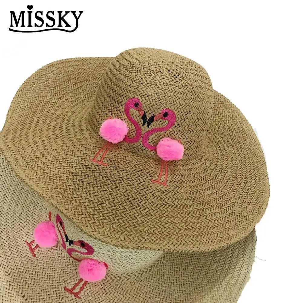 معرض من MISSKY الكبار لطيف فلامنغو التطريز Sunshading قبعة مع كبير إيف جولة الأعلى شاطئ كاب هدية حلية لطيف جميل قبعات SAN0