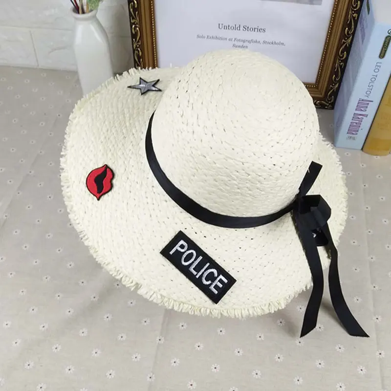 2019 النساء Bowknot الشريط القش قبعة الصيف قبعات للحماية من الشمس للسيدات واسعة حافة عطلة شاطئ كاب الأزياء الإناث الأشعة فوق البنفسجية حماية قبعا...