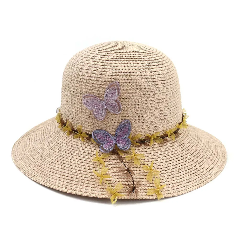 استعارات من جديد الصيد قبعات الصيف النساء قبعة الشمس راية فراشة قبعات من القش اليابانية الكورية نمط قبة قبعة بحافة لسيدة الشاطئ قبعات