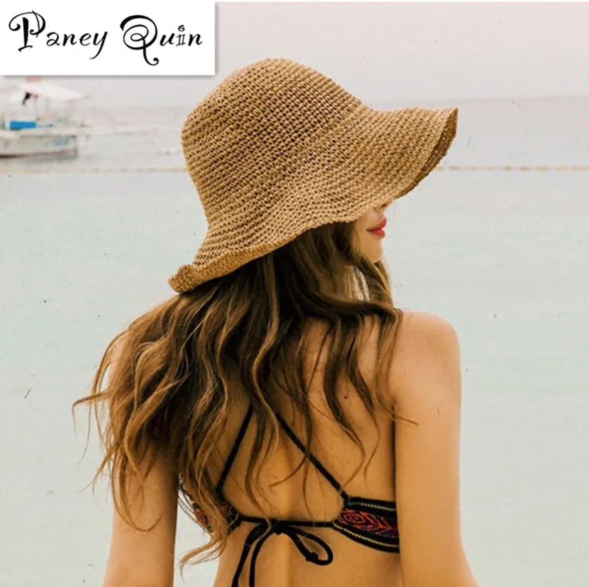 استعارات ل النساء قبعات صيفية الشمس الشاطئ بنما سترو قبعة واسعة موجة حافة مطوية في الهواء الطلق قبعات الترفيه عطلة الرافية كاب أقنعة قبعة
