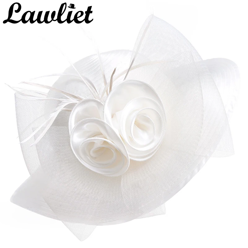 معرض ل واسعة بريم القبعات للنساء الأبيض الريشة شبكية fascinator الشمس القبعات السيدات الفتاة الصيف القبعات الزفاف ديربي الكنيسة بيتش كاب