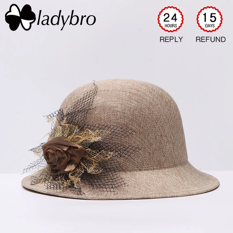 استعارات ل Ladybro جديد الربيع النساء قبعة الشمس ل الإناث القبعة المستديرة سيدة فيدورا قبعة الصيف خمر دلو الشاطئ كاب الأزياء زهرة الكتان كاب