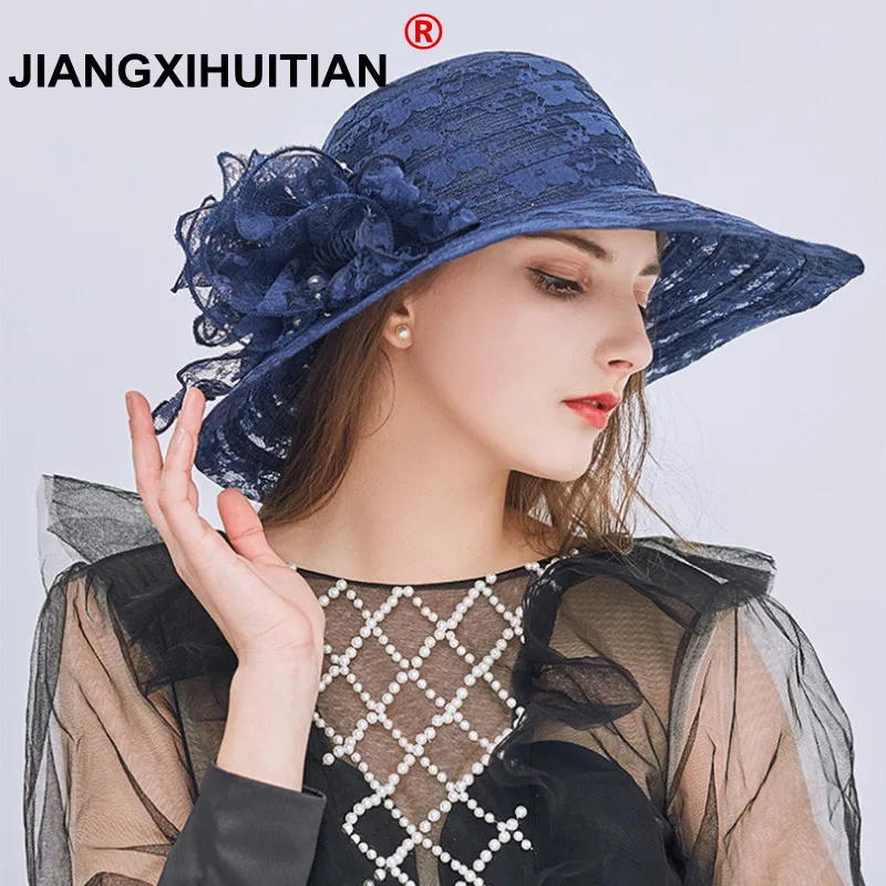 استعارات من 2018 جديد خمر الزهور الدانتيل صافي الغزل قبعات للحماية من الشمس للنساء الصيف الواسعة الحافة طوي في الهواء الطلق السفر الشاطئ قبعات