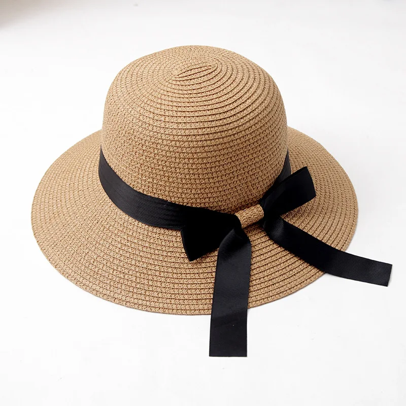 المنتجات ذات الصلة ل Beach Caps و 2019 العصرية شقة أعلى واسعة بريم سترو قبعات للحماية من الشمس للنساء شريط أسود Bowknot الشمس قبعة واقية بلون الصيف شاطئ بنما قبعات