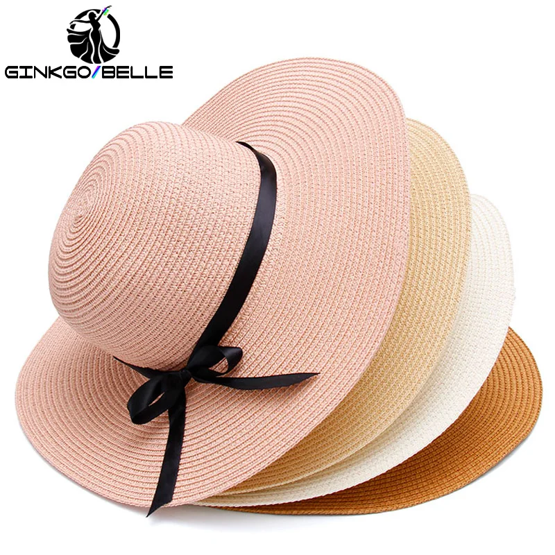 التطريز شخصية مخصص النص شعار التطريز المرأة قبعة الشمس كبيرة حافة القش قبعة في الهواء الطلق قبعة للشاطئ الصيف كاب Dropshippin