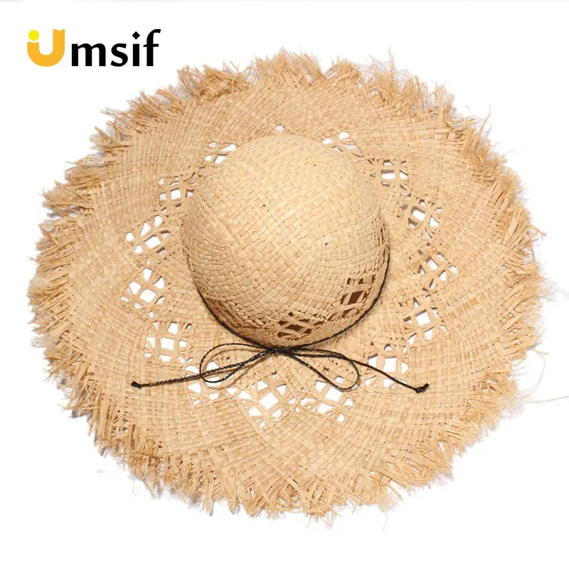 المنتجات ذات الصلة ل Beach Caps و الصيف الرجعية بلون كبيرة قبعة من القش بحافة عريضة للنساء الرافية قبعة الإناث عارضة الجوف شاطئ الشمس قبعة مرِنة قبعات فيدورا