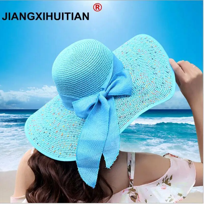 استعارات من Jiangxihuitian 2018 الصيف المرأة قبعات الشاطئ قبعات طوي الشيفون مرن قبعات للحماية من الشمس عارضة السيدات قبعات مكسيكية bowknot قبعة السيدات