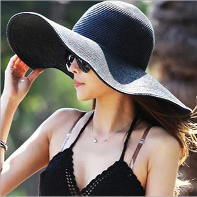 المنتجات ذات الصلة ل Beach Caps و Xuyijun 2017 السيدات أزياء المرأة طوي واسعة كبيرة مرن بريم الصيف قبعة الشمس الشاطئ قبعة القش كاب قطرة الشحن 14 اللون