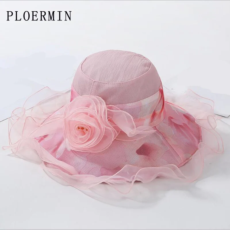 المرأة واسعة حافة قبعة الشمس لطيفة الصلبة الأزهار كنتاكي ديربي قبعة للنساء سيدة الكنيسة الزفاف قبعة مرِنة الصيف شاطئ كاب