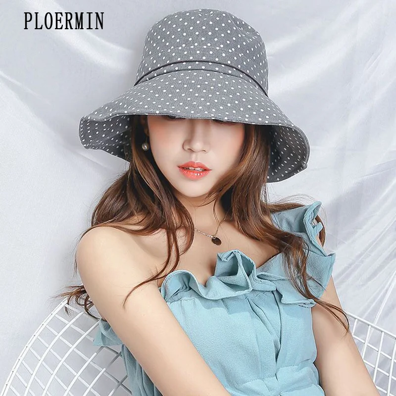 صور من الإناث قبعة الشمس الصيف واسعة حافة البولكا نقطة القوس الصياد قبعة 2019 أزياء المرأة طوي قبعة للشاطئ المضادة للأشعة فوق البنفسجية من الشمس كاب
