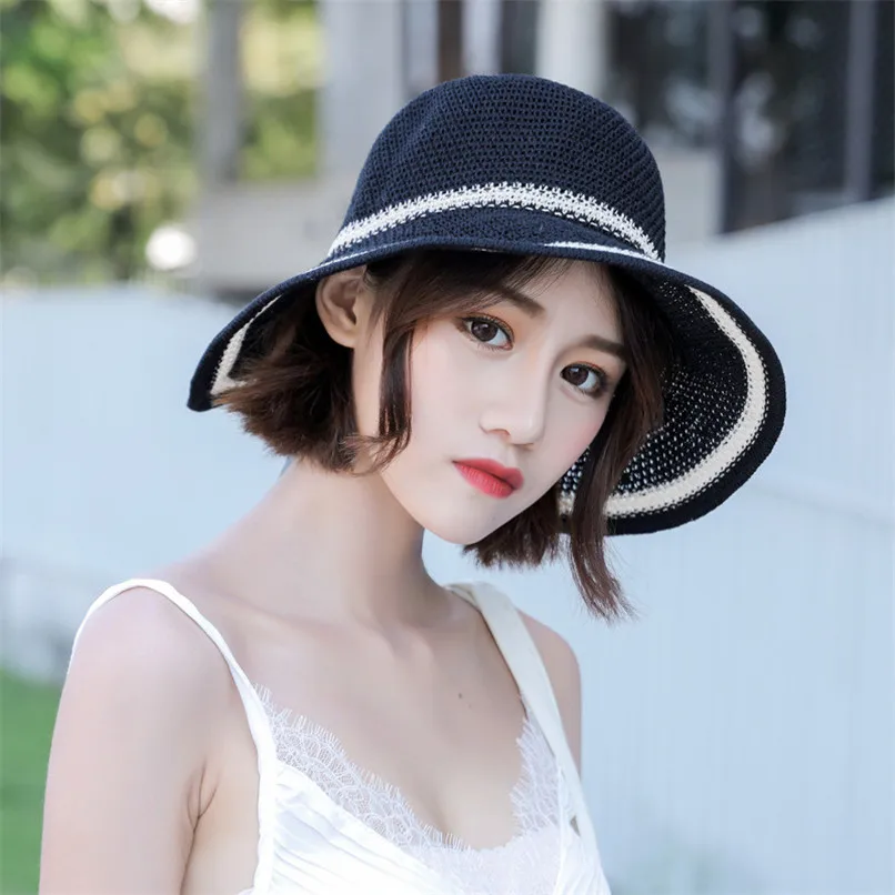 معرض من الشاطئ قبعات المرأة الصيف القطن قبعة قبعة للشاطئ يمكن طيها قبعة الشمس قناع قبعة صياد #2p24