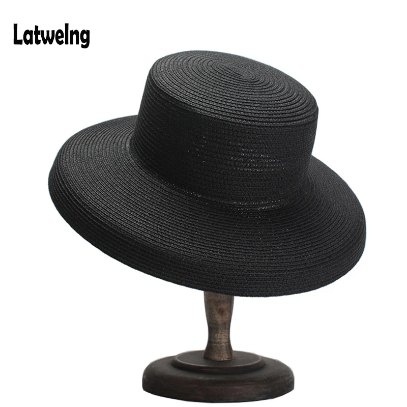 معرض من خمر الكنيسة القبعات الفاخرة العلامة التجارية المرأة سترو قبعات للحماية من الشمس الصيف قبعة الشمس لسيدة شقة بنما قبعة للشاطئ حزب الأسود كاب ب...