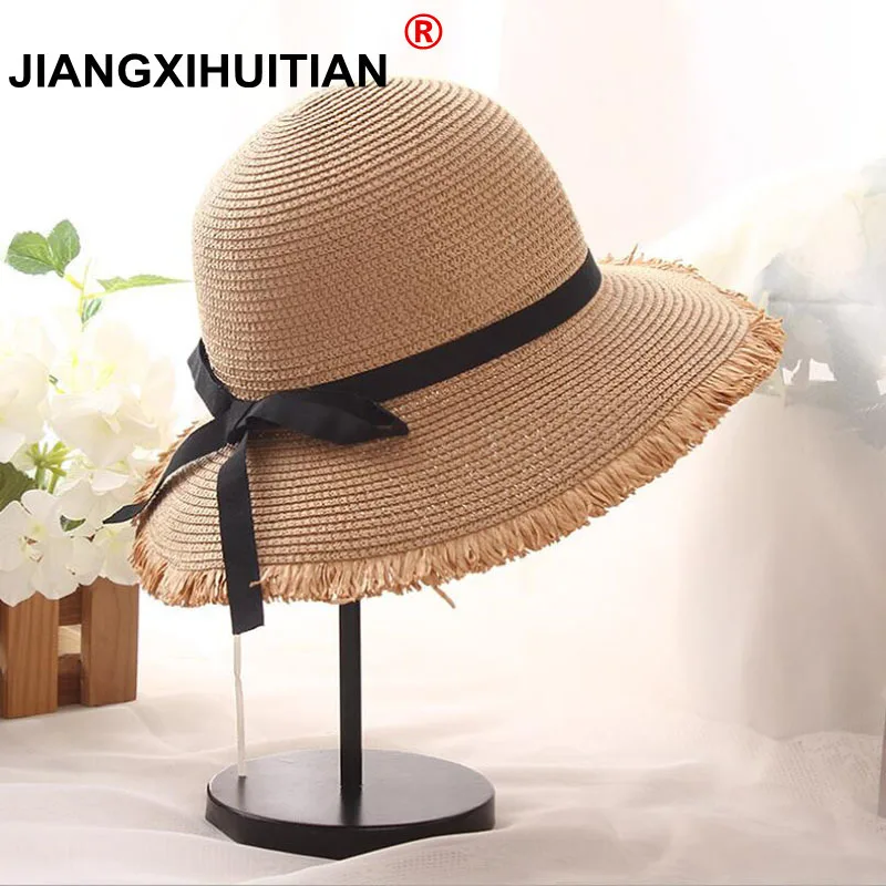 معرض ل الجملة المرأة الطبيعي واسعة حافة قبعات من القش هامش النساء عادي كبيرة الشاطئ الصيف القوس الشمس قبعات كبيرة قبعة من القش شحن مجاني