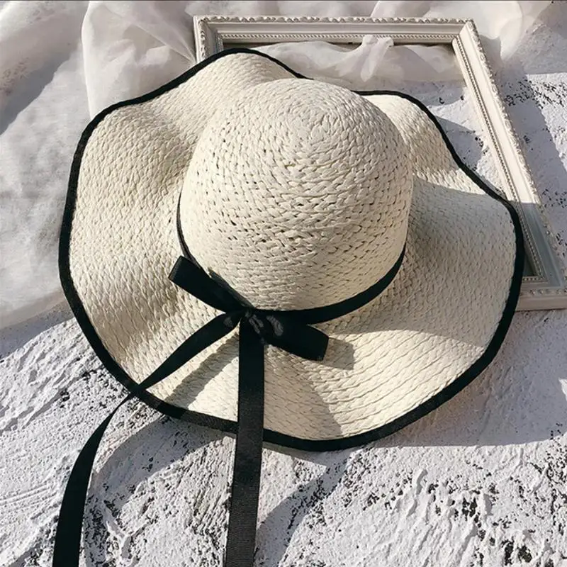 قمة صلب فارغة القش قبعة للشاطئ النساء الصيف قبعات للحماية من الشمس واسعة حافة قبعة الشمس للنساء السيدات عارضة الصلبة طوي الصيف شاطئ قبعات