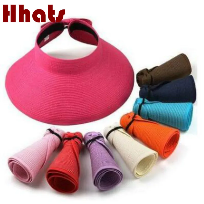 معرض من الأزياء طوي قبعة القش واسعة حافة تعديل كبير بريم الصيف قبعة الصلبة القوس في الشمس شاطئ كاب الشمس بنما
