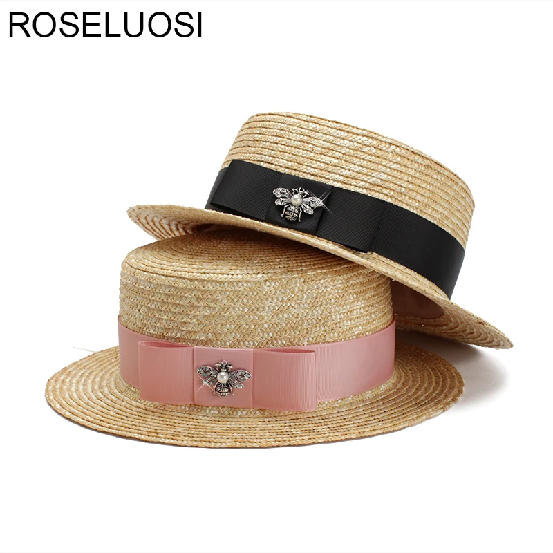 صور من Roseluosi 2018 القبعات الصيفية للنساء القش الطاقية القبعات المسطحة أعلى قبعة الشمس السيدات أنيقة شاطئ كاب قبعات مكسيكية موهير فيرانو