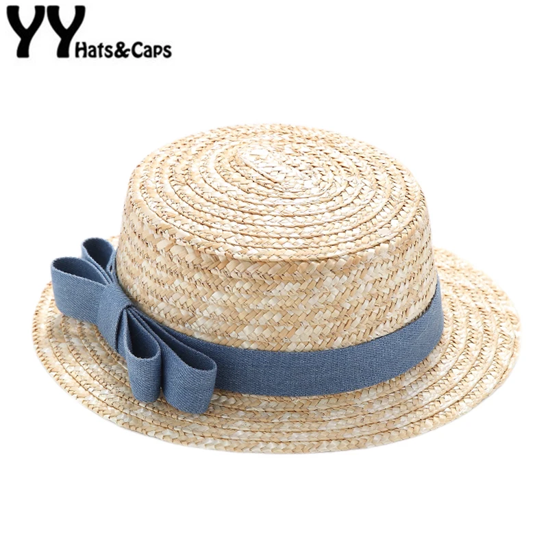 معرض من YY لطيف الأطفال قبعات للحماية من الشمس جان Bownet الشاطئ شقة الفتيات الصيف القش كبيرة حافة الشمس قبعة واقية CM19002